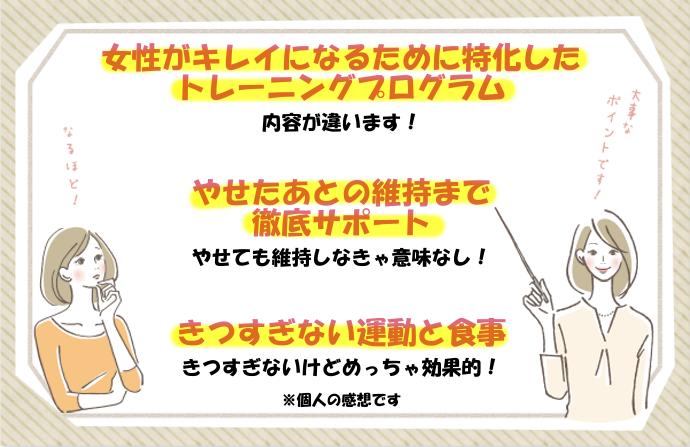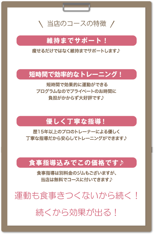 ですので『キレイにやせたい!』と思っている方は、ぜひボディメイク専門ジムの当店にご相談ください!